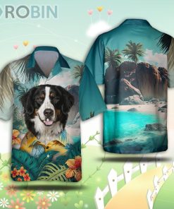 Celebrate Summertime with a Bright and Whimsical Bernese Mountain Dog Hawaiian Shirt!