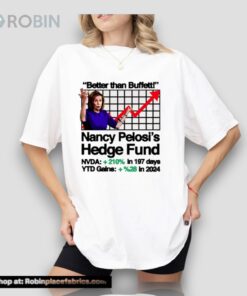 Looking for a shirt that makes a bold statement? Look no further than our Nancy Pelosi's Hedge Fund Unisex Shirt. This stylish and trendy piece is sure to turn heads and spark conversation wherever you go. With a design that pays homage to two powerful figures in finance, this shirt is a must-have for anyone looking to stand out from the crowd. Made with high-quality materials, this shirt is not only fashionable but also comfortable to wear all day long. Don't miss out on your chance to own a piece of fashion history – get your hands on this exclusive design today!