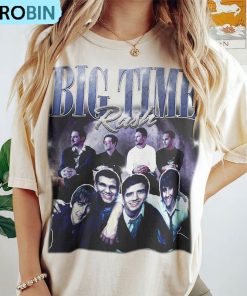 The Big Time Rush Band 90s Vintage Shirt is a perfect choice for any fan of the iconic band. It features a classic design with the band's logo printed on the front in a vintage style. The shirt is made with a 100% cotton blend and is available in an array of colors. The comfortable, stylish fit is perfect for those days when you just want to kick back and rock out. Whether you're heading to a show or just out for the day, the Big Time Rush Band 90s Vintage Shirt is sure to always keep you looking your best. Paired with a hoodie or sweat shirt, it makes for a great go-to outfit.