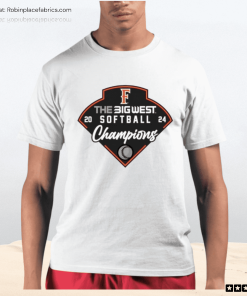 The design of the Big West Softball Cal State Fullerton Champions 2024 Shirt features bold, vibrant colors that pop against the fabric. The graphic on the shirt showcases the team logo in intricate detail, conveying a sense of pride and accomplishment. The shirt is made of soft, comfortable material that is perfect for wearing during game days or casual outings. It is a must-have for any fan of the Cal State Fullerton Softball team, serving as a stylish and eye-catching way to show support for the champions.