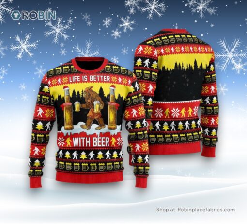 Bigfoot Sweater, Christmas Is Better With Beer Ugly Christmas Sweater, Ugly Sweater For Men And Women details