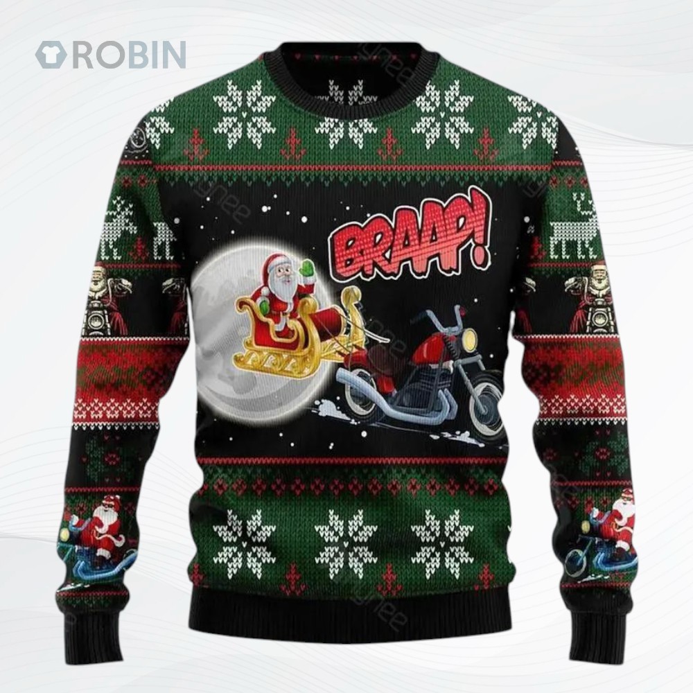 Ho Ho Hold on! 🎅🏍️ Rock your holiday cheer with this uniquely awesome sweater. Featuring a rebellious Santa on a hog, it's the perfect mix of festive and fun. Get ready to turn heads at your next Christmas party. Limited edition – grab yours before they ride off into the sunset!