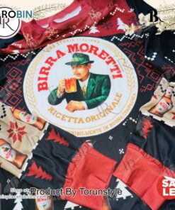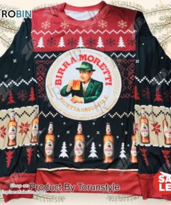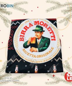 Birra Moretti Christmas Sweater Italian Beer Themed Ugly Sweater with Snowflakes & Beer Bottles, Festive Holiday Knit for Men and Women details