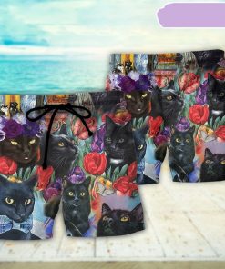 This unique beach short design features a striking black cat surrounded by vibrant flowers, making it a perfect gift for cat lovers or anyone who appreciates nature-inspired art. The colorful and playful design is ideal for a holiday or summer getaway, adding a touch of whimsy to any beach or poolside outfit. The high-quality material ensures comfort and durability, making these shorts both stylish and functional for any warm-weather adventure.