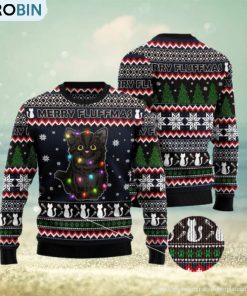 This cozy Christmas sweater features a playful and festive design that is sure to delight cat lovers everywhere. With its soft and fluffy material, it provides a warm and comfortable fit. The sweater showcases a charming holiday scene complete with snowflakes, Santa hats, and Christmas trees. The cute black cat adds an adorable touch, making it the perfect gift for any cat lover looking to celebrate the holiday season in style. Whether you're attending a holiday party or just lounging at home, this sweater is a fun and festive addition to any winter wardrobe.