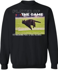 Black Cat Hotboyz Player of the game 117 rushing YDS 2 TDS 9 Lives shirts. Available in t shirt, long sleeve, tank top, hoodie, sweatshirt and multiple color. If you want in another color please contact us.