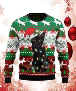 Black Cat Light Christmas Ugly Sweater