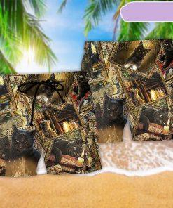 Black Cat Magic Retro Beach Short, Gift for Holiday Summer