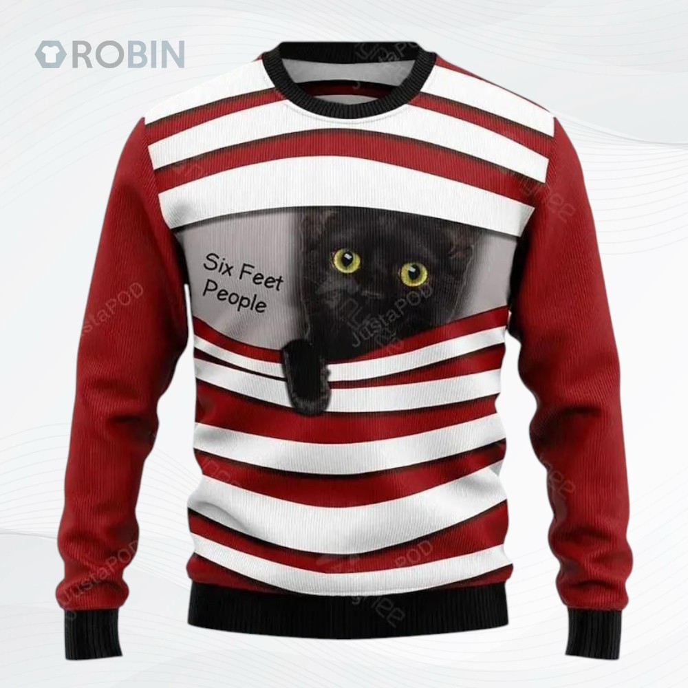 Purrfectly spooky and festive! This sweater features an adorable black cat enforcing social distancing with a touch of holiday cheer. Stay safe and stylish this Christmas season. Get yours meow!