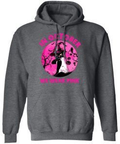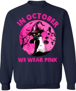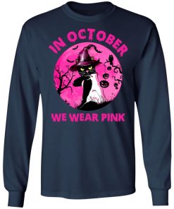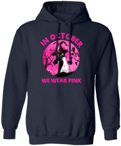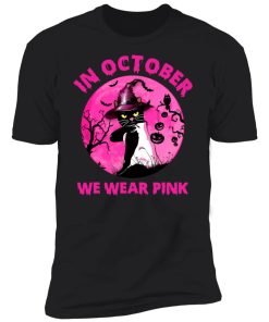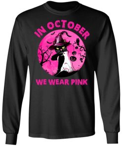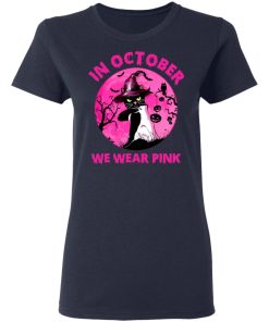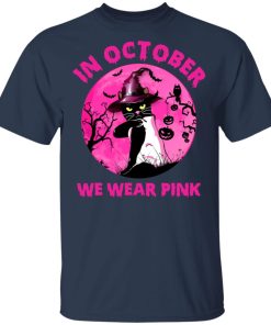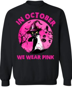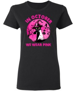 Black Cat Witch In October We Wear Pink Breast Cancer Halloween Shirt