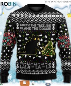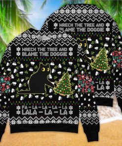 Black Cat Wreck The Tree And Blame The Doggie Merry Christmas La La Christmas Ugly Sweater, Sweatshirt details
