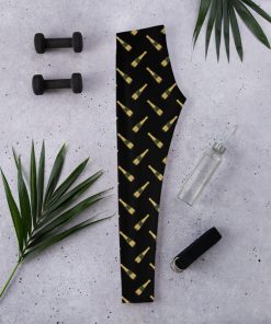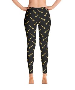Black Champagne Bottle Print Leggings, High Waisted Pants