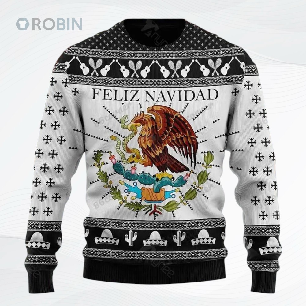 Black Feliz Navidad Mexican All Over Printed Ugly Christmas Sweater