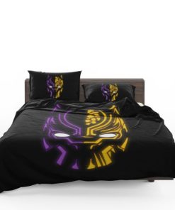 Black Panther Illustration Neon Bedding Set – duvet cover and pillow case.