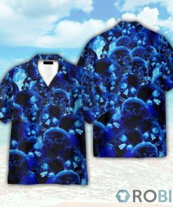 The Blue Skull Mens Button Up Shirts Hawaiian Shirt is a striking and unique piece of clothing. This shirt boasts a bold and eye-catching blue color that is sure to turn heads. The skull pattern adds an edgy and contemporary touch to the design. The button-up style gives the shirt a polished and classic look, suitable for both casual and formal occasions. With its comfortable and breathable fabric, this shirt is perfect for the summer season. It is an excellent choice for those who want to make a fashion statement and stand out from the crowd.