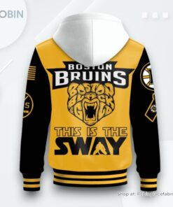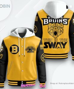 Gear up for game day with the Boston Bruins Sway Special Edition Hooded Varsity Jacket! 🔥🐻 This jacket is the perfect blend of classic varsity style and modern comfort, featuring a bold Bruins design, cozy hood, and quality construction. Show your team pride in style! Available now. #BostonBruins #NHL #VarsityJacket #Hockey #Bruins #NewArrival #FanGear #Swag