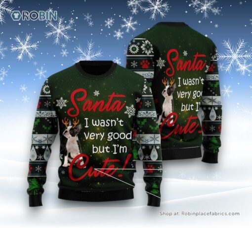 Boston Terrier I'M Cute Ugly Christmas Sweater details