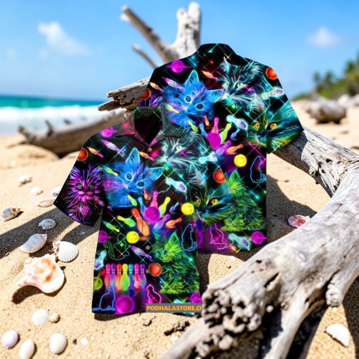 Bowling Rolling With My Homies Cats Short Sleeve Button Down Hawaiian Shirt