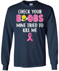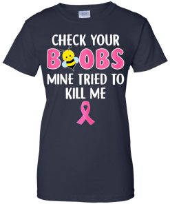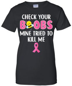 Breast cancer awareness Check your boobs mine tried to kill me shirt