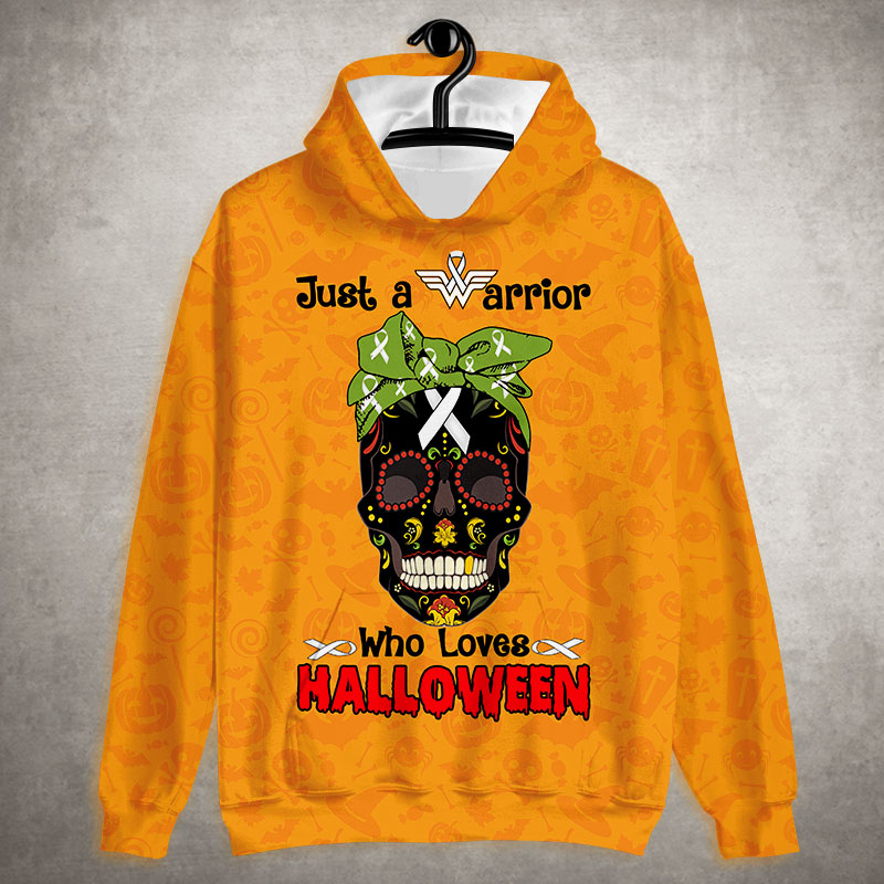 Breast Cancer Just A Warrior Who Loves Halloween All Over Print T Shirt, Hoodie