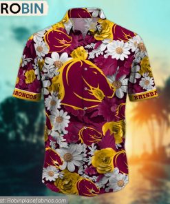 The Brisbane Broncos Hawaiian Shirt NRL Teams are a vibrant and unique collection of clothing inspired by the popular rugby league team based in Brisbane, Australia. These shirts feature bold and colorful designs, reminiscent of the tropical Hawaiian style. They are not only a stylish fashion choice but also a way for fans to show their support for the Brisbane Broncos NRL team. Whether worn at matches or as casual wear, these shirts are sure to make a statement and stand out from the crowd.