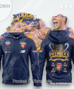 Brisbane Lions 2024 AFL Premiers Four Times AOP Clothing (Hoodie, Sweatshirt, T Shirt) details