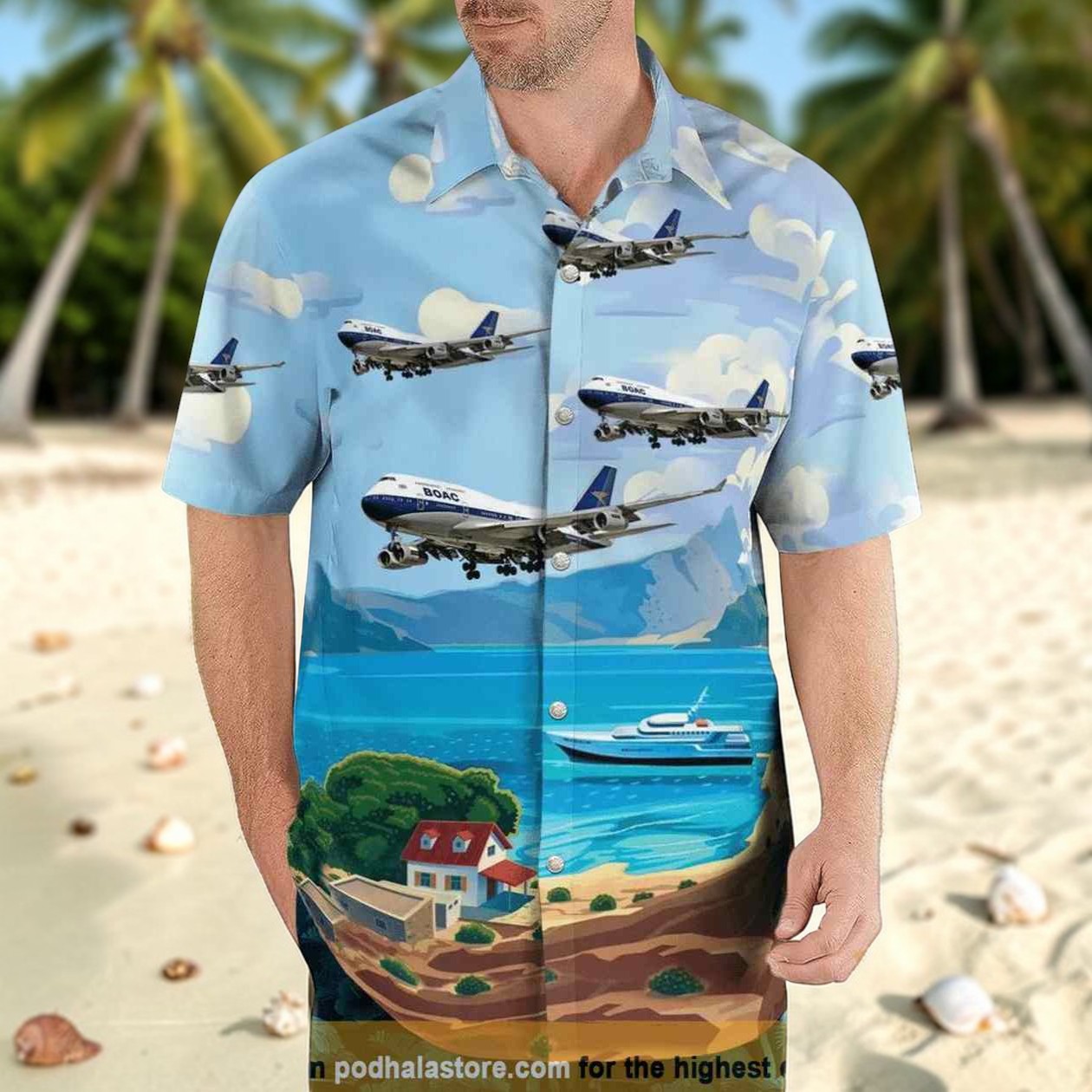 A sweeping horizon of deep blues meets soft, drifting clouds, setting the stage for the iconic silhouette of the British Airways Boeing 747 400 soaring overhead. Hues of ocean and sky blend seamlessly with touches of lush green from island houses and gentle mountain outlines, evoking an era when travel was both adventurous and leisurely. The shirt’s composition balances bold shapes with a nostalgic feel, where the vintage aircraft becomes a symbol not just of flight, but of exploration and personal journeys. This design speaks to those who carry a quiet passion for aviation or harbor memories of far-flung destinations. It’s less about flashy logos and more about the story the imagery tells—a narrative of skies crossed and new places found. Men and women drawn to travel history, the romance of the golden age of airlines, or simply the unique artwork of a plane framed by tropical vistas would find a genuine connection here. Wearing it casually, whether on a weekend stroll or at a travel-themed gathering, this British Airways Boeing 747 shirt feels like an invitation to reflect on one’s own adventures. It invites a subtle expression of identity—someone who values both the thrill of the open sky and the calm of island getaways. Beyond its retro vacation vibe, it quietly nods to a particular slice of travel culture prized among enthusiasts and those who appreciate a well-crafted, story-rich garment.
