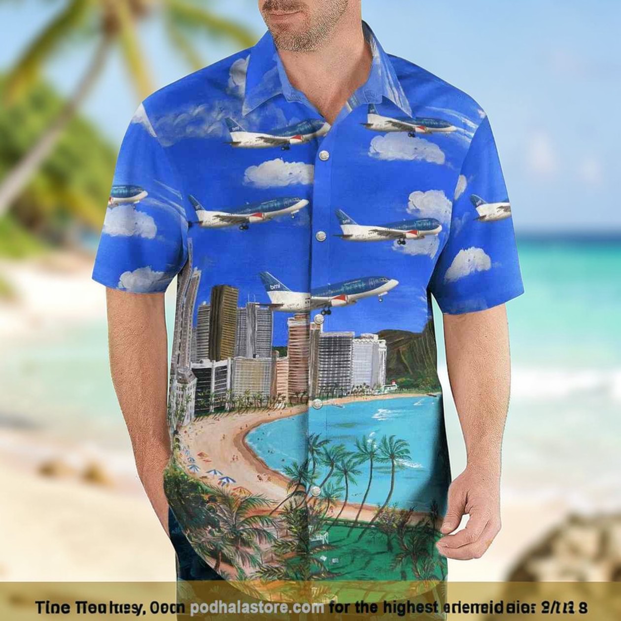 I came across this British Midland International Boeing 737 Hawaiian shirt recently, and honestly, it’s such a cool find if you’re into planes or travel vibes in general. The design is like this playful collage that really captures the spirit of aviation but with a totally chill, tropical twist. You’ve got these bright blue skies and fluffy clouds scattered around, with planes flying over everything. Then it mixes in this retro-inspired city skyline, palm trees swaying, and even a beach scene with ocean waves that make it feel like a mini getaway just wearing it. It’s not your usual busy print either—it somehow balances the bold airplane imagery with the relaxed tropical feel, so it doesn’t come off as too over the top. If you’re someone who loves aviation in particular, or just appreciates unique shirts that tell a story, this shirt hits that niche just right. It’s casual without being boring, so it’s great for throwing on during a vacation or even for weekend hangouts when you want to add a little adventurous flair to your look. I think it could also be a neat gift idea for a friend who’s into planes or someone who’s planning a trip soon. It’s fun, distinctive, and really fits the vibe of someone who appreciates travel and airplanes without going full pilot uniform. The aviation Hawaiian shirt style here feels fresh and playful without trying too hard, which is what makes it stand out.