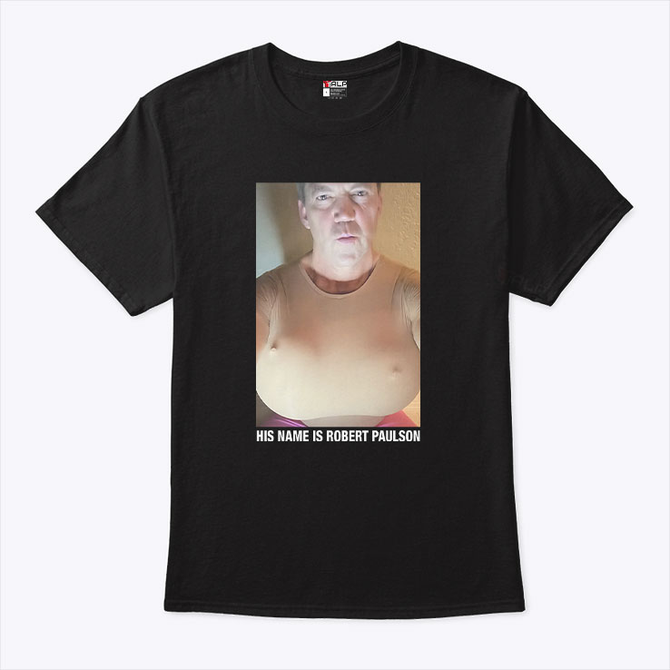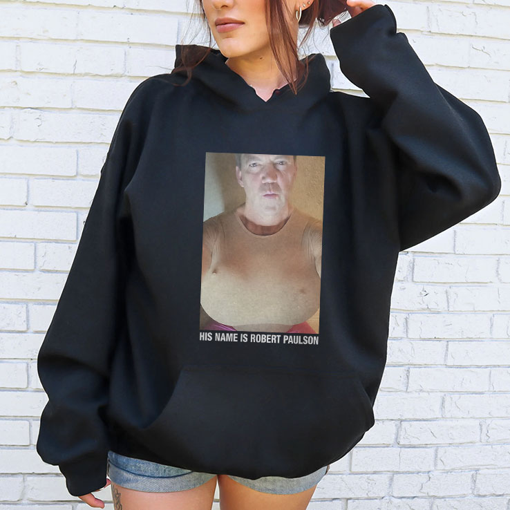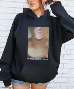 A stark rectangular portrait dominates the chest of this shirt, capturing an image that seems pulled straight from a film still—raw, iconic, and instantly recognizable to those in the know. Below it, bold white text spells out “HIS NAME IS ROBERT PAULSON” in clean, all-caps sans-serif, the simplicity of the typography framing the image with a quiet intensity. The shirt’s design carries an inside joke that’s more than just humor—it taps into a shared cultural moment, one that resonates with anyone conversant in cult cinema or meme lore. This shirt doesn’t just wear a phrase; it carries an assertion, a nod to a character who gained meaning beyond the screen, becoming shorthand for identity and solidarity in certain fan circles. Its crisp, straightforward graphic mirrors the directness with which fans embrace this piece of internet and movie history. The design stands out without shouting, a kind of badge for the casually devoted or those who appreciate subtle provocations wrapped in humor. Among meme enthusiasts and popular culture aficionados, the appeal lies in the blend of nostalgia and wit, a clever layer of meaning beneath what seems like a simple caption. It’s the kind of shirt that sparks recognition and conversation among peers, a quiet way to declare affinity. Given its distinctiveness, it’s a thoughtful choice for gifting—something that speaks to inside jokes and personal interests without needing further explanation. The phrase “His Name Is Robert Paulson” here is more than lettering; it’s a cultural touchstone worn with a confident, playful edge.