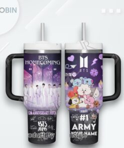 Celebrate 12 years with BTS! ✨ Snag this limited-edition 40oz tumbler & personalize it with your name. Perfect for staying hydrated while streaming their iconic music & reminiscing on unforgettable moments. Get yours before they're gone! 💜