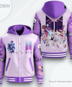 Dreaming of cooler weather and cozy nights? 💜 This hooded varsity jacket is calling your name! Show off your love for music and comfort with this stylish piece. Perfect for layering or wearing on its own, it's the ultimate statement piece for any wardrobe. Get yours today and let the purple reign!