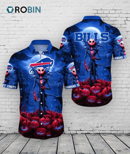Get ready for a spooky season in style! This festive Hawaiian shirt features jack-o'-lanterns with a touch of Bills spirit. Perfect for showing your team pride at Halloween parties or tailgating. A must-have for any true fan!