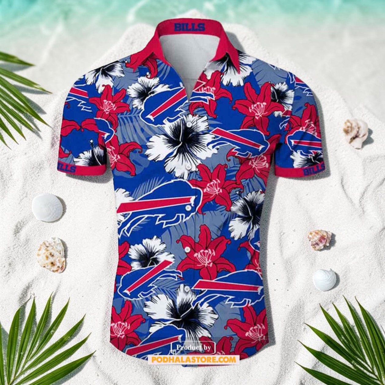 Vivid red and white hibiscus flowers burst against a deep blue backdrop, weaving through tropical leaves that swirl with effortless motion. The design balances bold athleticism and island flair, with the Buffalo Bills’ emblem seamlessly integrated into the pattern rather than sitting on the sidelines. This shirt doesn’t just celebrate a team; it captures the energy of game day and the laid-back spirit of beachside summer gatherings. The interplay between tropical motifs and the Bills’ confident typography creates a rhythm that feels both festive and intentional. It’s a statement piece that speaks to those who carry their team pride everywhere—from the shore to the tailgate. Anyone who thrives on vibrant style and fearless fandom will find a natural fit in this shirt’s bold colors and graphic craftsmanship. Ideal for a fan who wants more than just a logo tee, the fabric’s visual storytelling merges passion for football with a playful nod to vacation-ready vibes. It’s the kind of shirt that turns heads without shouting, a reflection of someone who lives equally for sunlit afternoons and the thrill of the game. This Buffalo Bills Hawaiian shirt invites its wearer to embrace that dual energy with confidence and style.