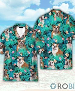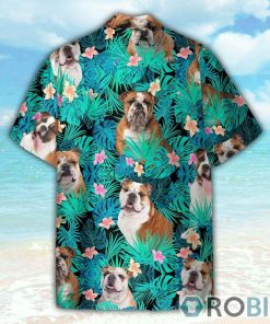 Bulldog In Tropical Green Leaves Hawaiian Shirt features