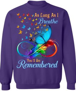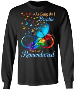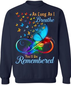 Butterflies as long as I breathe you’ll be remembered shirts. Buy it now, from $19.99 and $3.99 shipping. This shirt available in t shirt, long sleeve, hoodie, sweatshirt, tank top and multiple color.