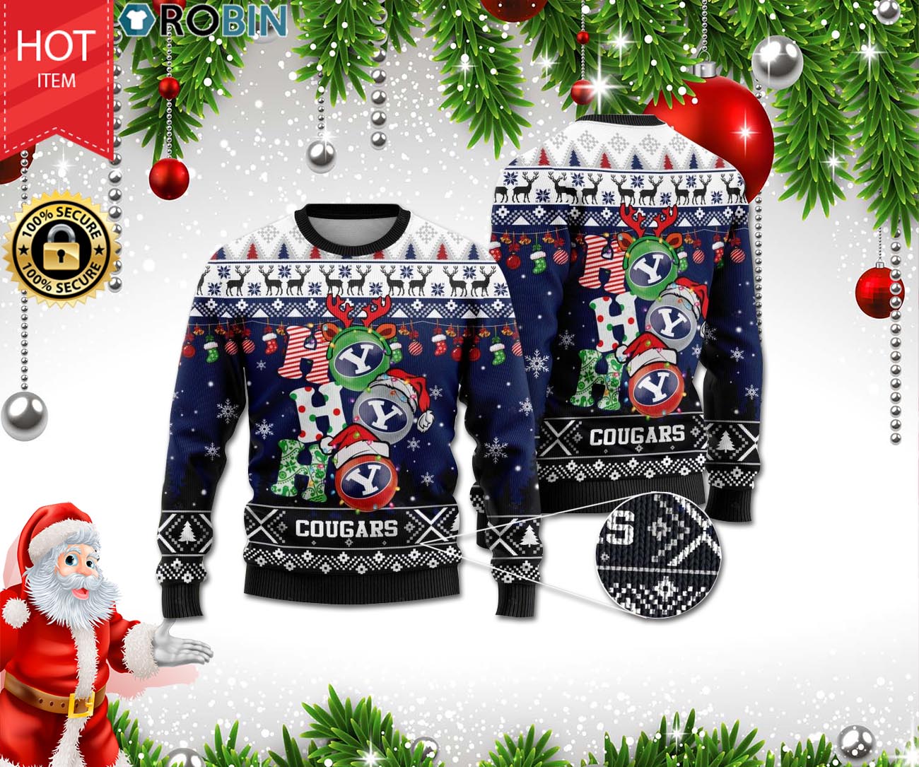 BYU Cougars Ho Ho Ho 3D Print Christmas Wool Sweater