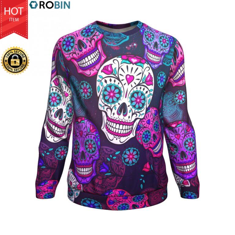 Calavera Colorful Sugar Skull Tradition All-Over Printed Wool Sweater