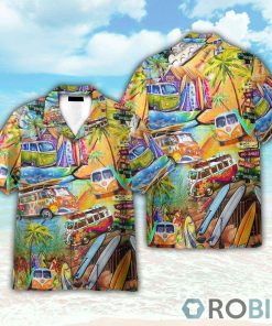 Campervan And Surfboards, Happy As A Hippie Hawaiian Shirt features