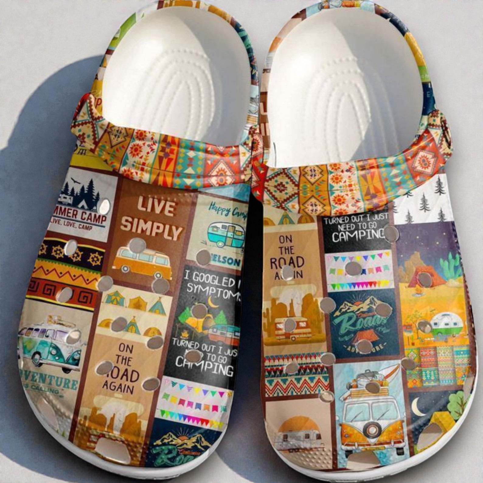 I’ve been wearing these slip-on sandals called the Camping Night Classic Crocs, and I seriously didn’t expect to love them as much as I do. The design is like this cool camping retro collage vibe—imagine a patchwork of old camp posters mixed with vintage vans, colorful geometric patterns, and little camping icons like tents and caravans scattered all over. It’s super playful and has this nostalgic feel like a road trip scrapbook come to life on your feet. If you’re into the outdoors or spend a lot of time camping, these feel like they were made just for you. They’ve got that fun, casual look that’s great for chilling around the campfire but also work well for everyday wear when you want something comfortable but with a bit of personality. The bold, playful fonts and vibrant colors really stand out without being over the top, so it’s not just another boring pair of sandals. I could totally see these as a cool gift for a friend who loves hitting the trails or going on road trips. They make camping trips a little more fun, and honestly, the style makes you want to keep them on even when you’re back home. If you’re after something that’s both quirky and comfy, these camping crocs are a solid pick.