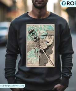 Camus Dark Art Plague Doctor Flowers Sepia Tone Shirt details