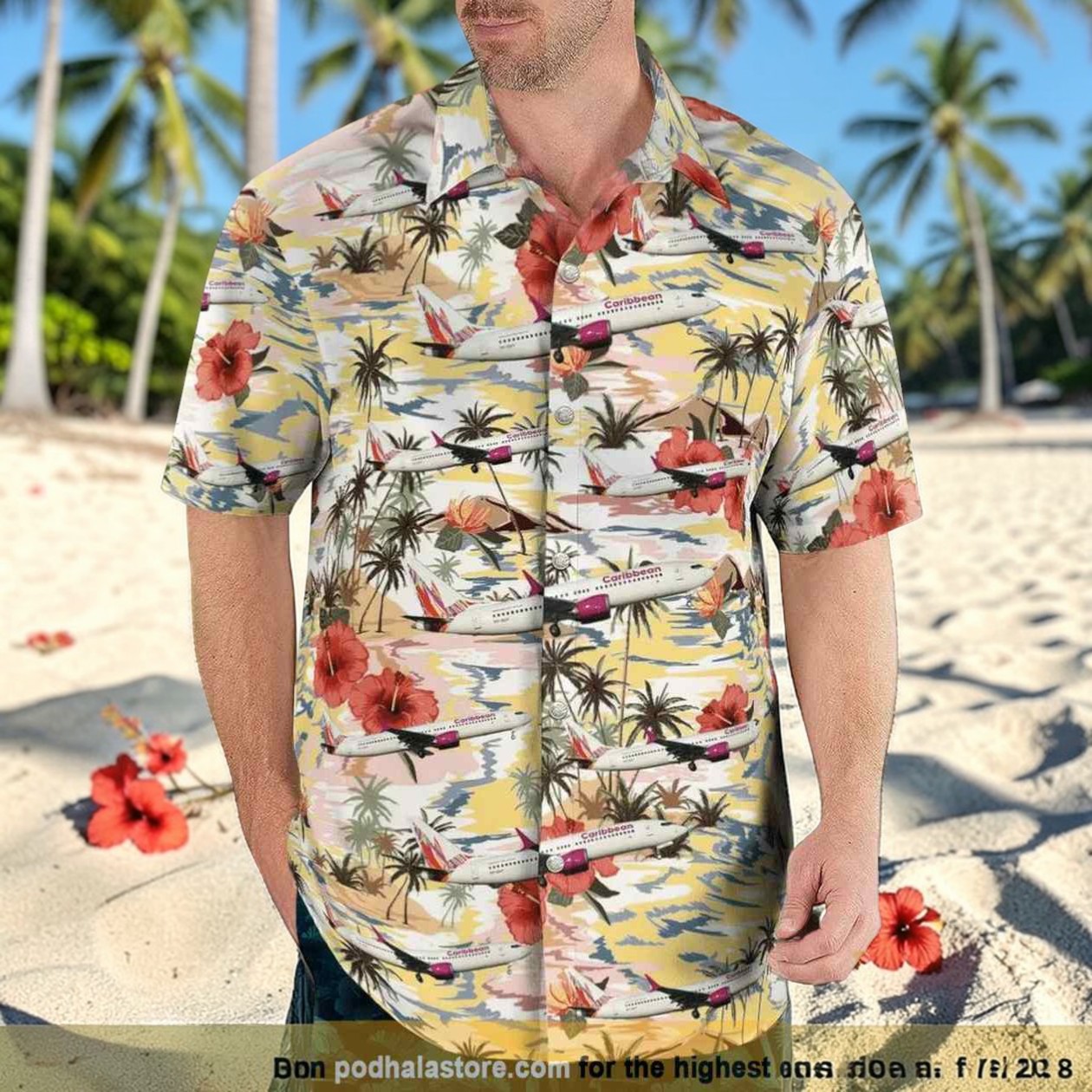 A Hawaiian shirt like this says more than just vacation mode. It’s a nod to those who see travel not just as a destination, but as a state of mind — a lifestyle stitched into every thread. This Caribbean Airlines Hawaiian shirt carries that spirit boldly, mixing tropical vibes with a retro nod to the golden age of air travel. Imagine palm trees swaying alongside sleek Boeing 737 Max 8 planes cutting through a sunset sky—the kind of design that feels like you’re always halfway to paradise. The pattern plays like a storybook of a tropical vacation, where hibiscus blooms and beach silhouettes blend seamlessly with the iconic imagery of flight. It’s not just for airport layovers or beachside strolls; it’s a piece that fits naturally into the everyday life of those who carry a deep love for exploration or a connection to the airline enthusiast community. Travelers who appreciate the laid-back warmth of island culture, blended with the thrill of flight, will recognize themselves here. Whether worn on a casual day out, a cruise, or tucked away in a travel wardrobe, this shirt captures that sense of freedom and adventure. It’s the kind of thing you might consider passing on to someone who gets what it means to chase horizons, not just check boxes on a bucket list. For anyone who’s been caught daydreaming of tropical skies and runway run-ins, this Caribbean Airlines Hawaiian shirt fits like a second skin.
