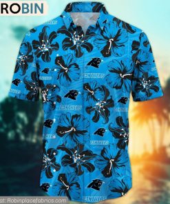 Carolina Panthers Hibiscus Tropical Pattern NFL Hawaiian Shirt details