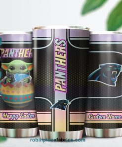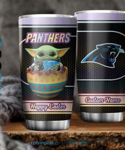 Carolina Panthers NFL Baby Yoda Happy Easter Custom Name Tumblers Cup