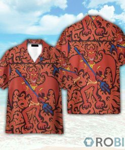This unique and eye-catching Hawaiian shirt features a captivating and intricate print design that is sure to turn heads. With its vibrant colors and bold patterns, this shirt is a true standout piece. The design showcases a playful and quirky interpretation of demons and gothic elements, with a touch of Hawaiian flair. It is the perfect choice for those who enjoy expressing their individuality and love for alternative fashion. Crafted with high-quality materials, this shirt offers both comfort and style, making it a must-have for any fashion-forward individual.