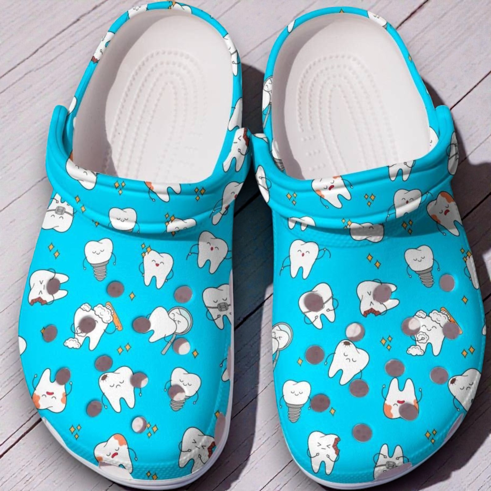 These bright blue Crocs are designed specifically for the dental squad—dentists, hygienists, assistants, and students who want to break the monotony of clinical whites. The custom print features a cast of "tooth" characters in various stages of dental care, making them an instant icebreaker for nervous patients.