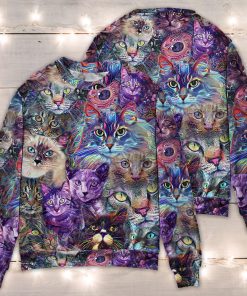 Cat Amazing Psychedelic Purple Christmas Ugly Sweater, Sweatshirt details