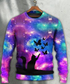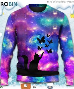Cat Beautiful Cat And Butterfly Ugly Christmas Sweater details