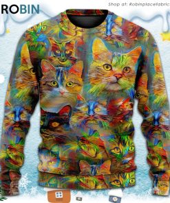 Cat Beautiful Colorfull Painting Ugly Christmas Sweater details