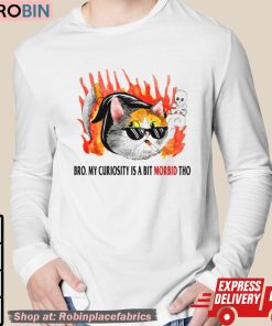 Cat Bro My Curiosity Is A Bit Morbid Tho Shirt features a unique and eye-catching design that showcases a playful and curious cat. The shirt captures the essence of feline nature with its mischievous and inquisitive expression. The cat’s playful demeanor is highlighted by the vibrant colors and intricate detailing of the design. This shirt is perfect for cat lovers who appreciate quirky and fun fashion pieces that celebrate the loveable and quirky nature of our furry feline friends. Whether you’re a cat enthusiast or simply appreciate a fun and unconventional fashion statement, this shirt is sure to bring a touch of whimsy to your wardrobe.