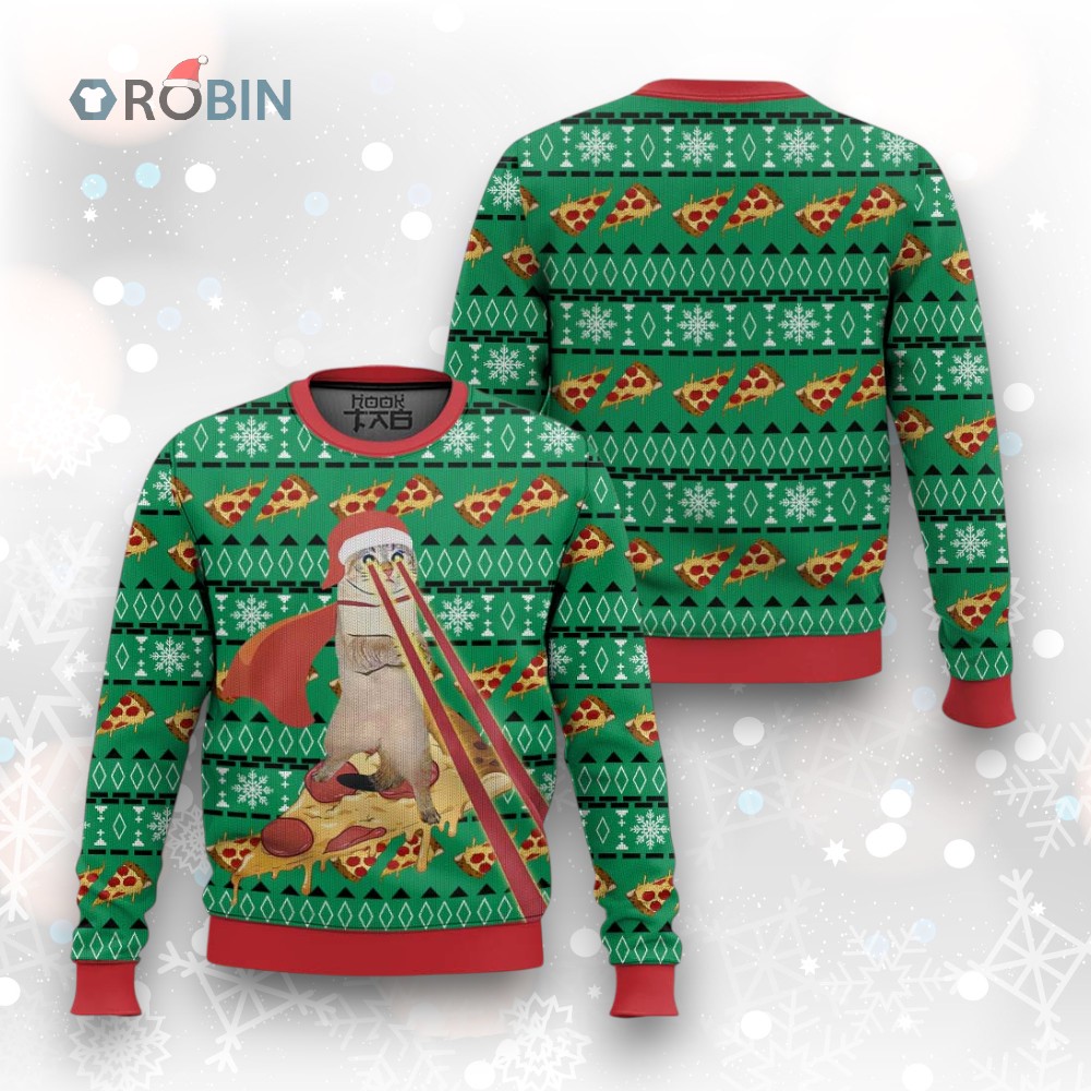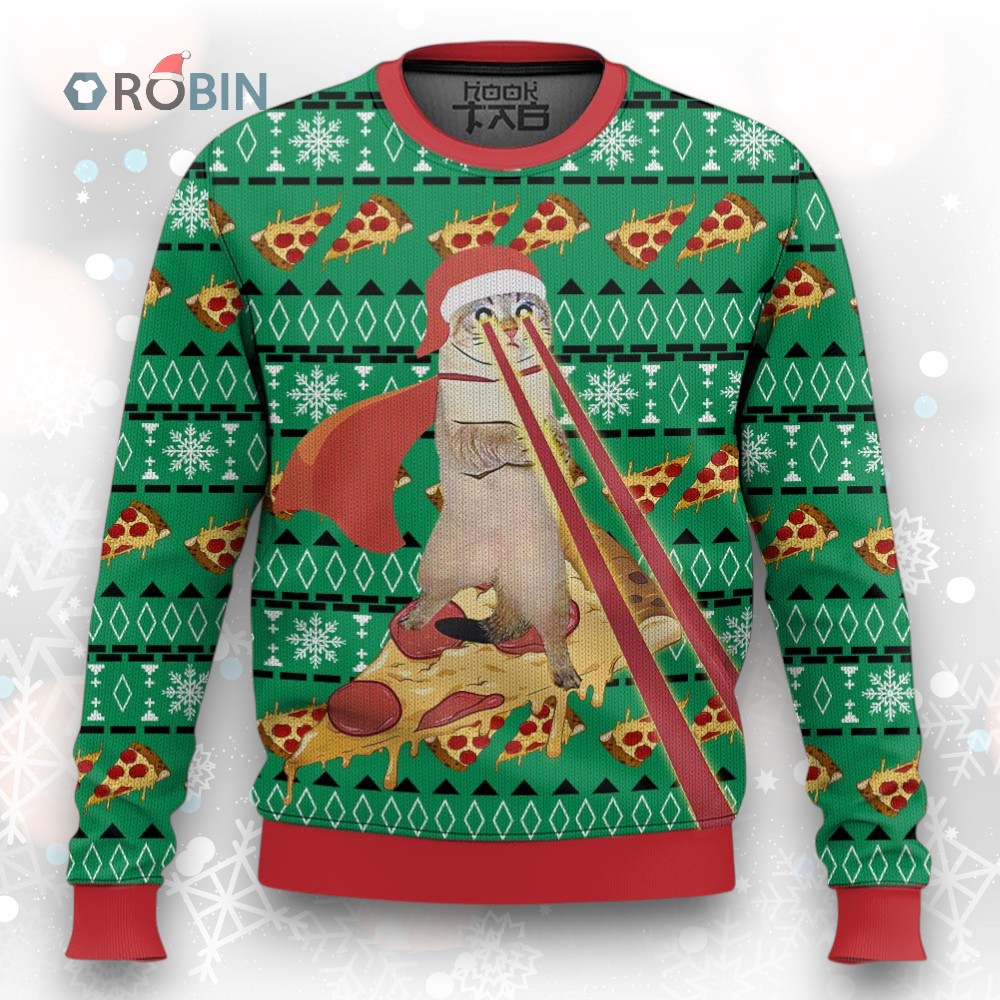 Cat Christmas Pizza And Cat Pizza Pattern Green Christmas Ugly Christmas Sweater 3D For Men And Women